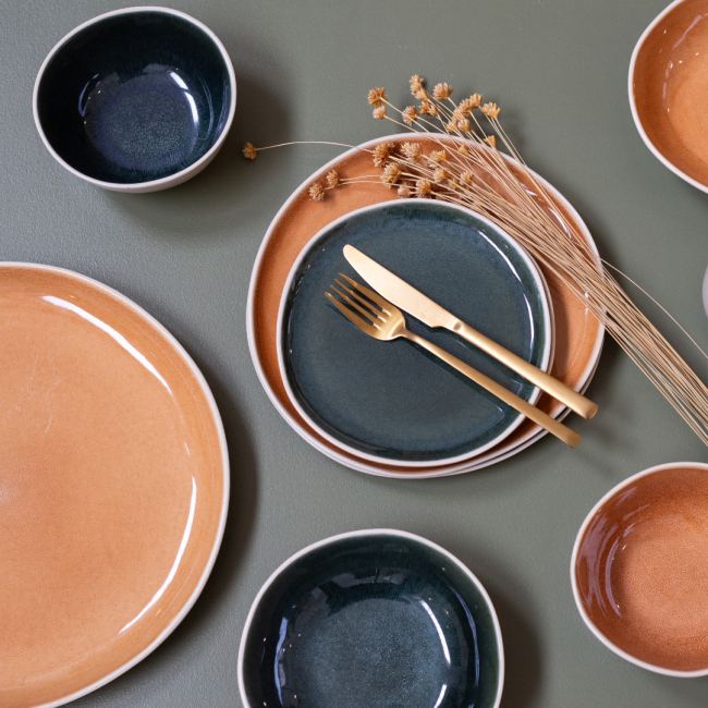 Chaque élément de ce service de table Coralia reflète un subtil équilibre entre charme artisanal et design contemporain. Ses finitions émaillées créent des reflets uniques qui évoquent la beauté des coraux et récifs marins, apportant une note lumineuse et sophistiquée à votre table.
