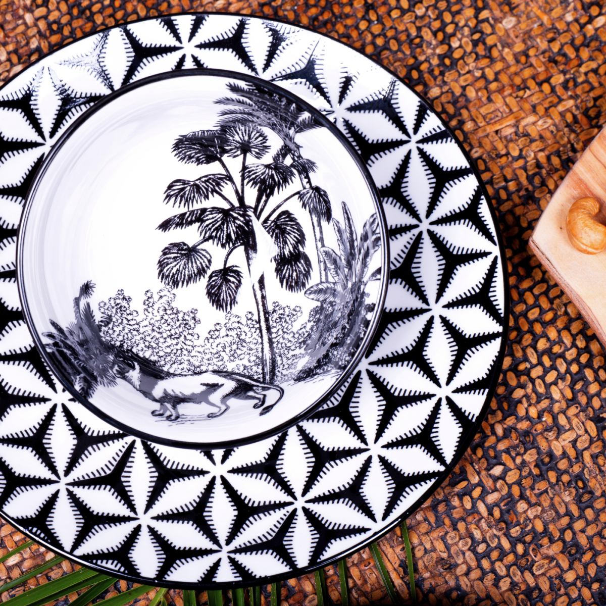 Chaque bol, aux teintes noir et blanc et aux motifs tribaux, combine design graphique et praticité, idéal pour un usage quotidien ou pour des occasions spéciales.