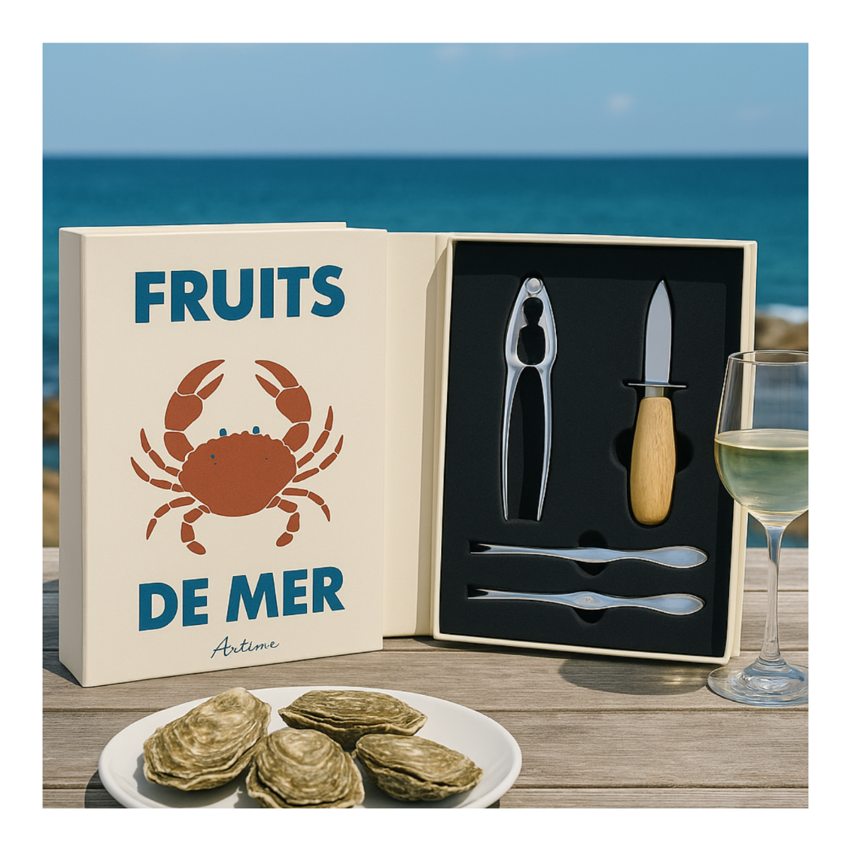 Compact et fonctionnel, ce coffret est à la fois un accessoire de table, un objet de rangement et une idée cadeau originale pour les amateurs de fruits de mer.