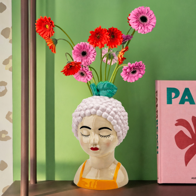 Apportez une touche artistique et poétique à votre intérieur avec ce vase buste de la collection Studio Rosalie. Son design délicat, représentant un visage apaisé surmonté d’un fruit stylisé, en fait une pièce unique à la fois douce et expressive.